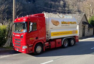 Vor kurzem durften wir ein neues Silo-Fahrzeug (3-Achser mit einer Nutzlast von 13 Tonnen / in Kombination mit Anhänger 23.1 Tonnen) in Empfang nehmen. Durch den kurzen Radstand und die Nachlauf-Lenkachse ist das neue Fahrzeug sehr wendig. Das Fahrzeug wird für die Auslieferung von Holzpellets sowie Lagerraumreinigungen eingesetzt.